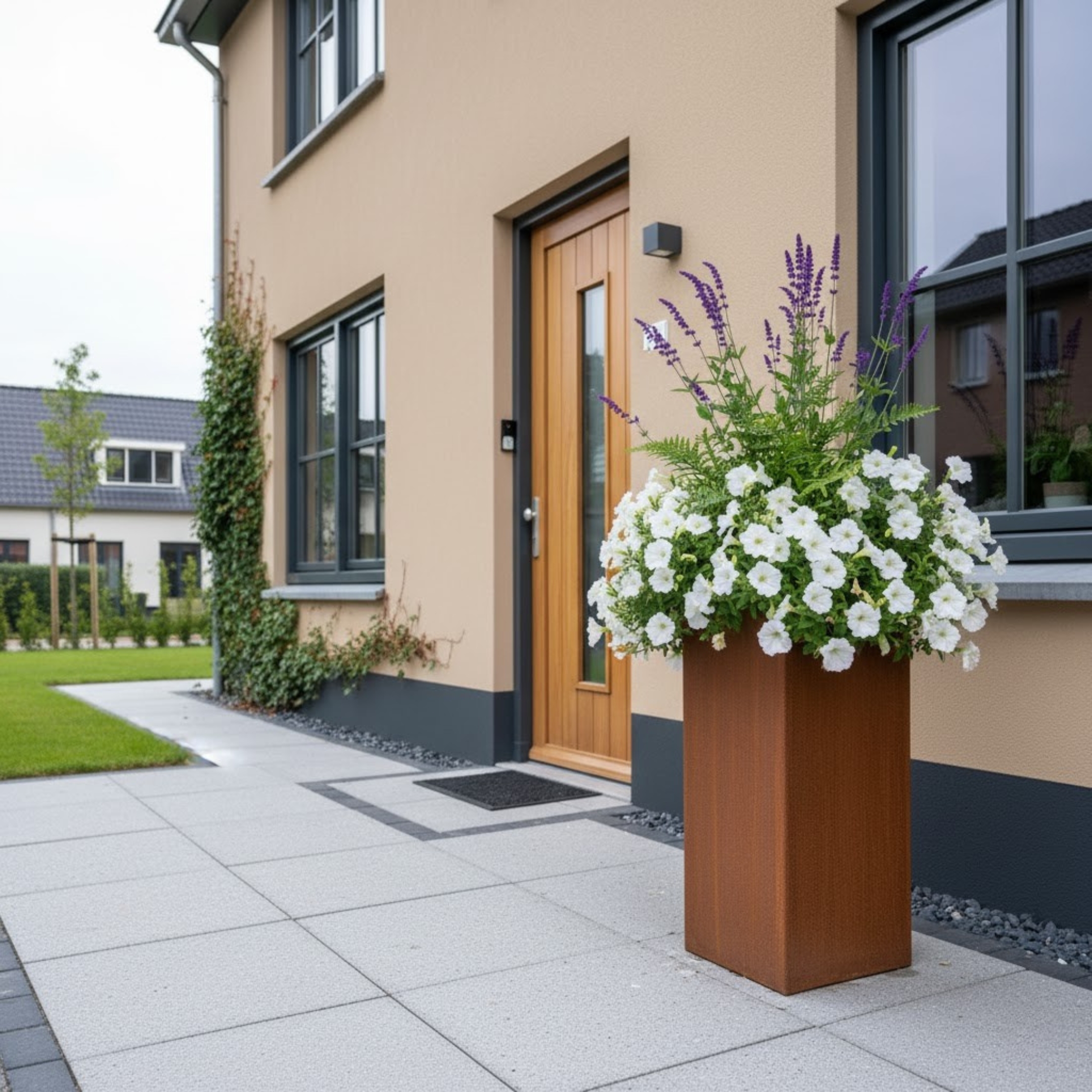 Cortenstaal staat bekend om zijn roestbruine kleur. Dit is een natuurlijk proces dat na de productie start en waarvan de snelheid varieert door vochtigheid. Vaak zie je de eerste details al na enkele dagen. In het begin kan de kleur afgeven, maar na voltooiing van het proces is de plantenbak kleurvast.